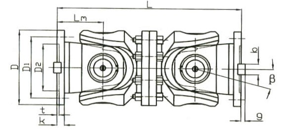 十字萬(wàn)向聯(lián)軸器有多種結(jié)構(gòu)型式,例如:十字軸式、球籠式、球叉式、凸塊式、球銷(xiāo)式、球鉸式、球鉸柱塞式、三銷(xiāo)式、三叉桿式、三球銷(xiāo)式、鉸桿式等,*常用的為十字軸式,其次為球籠龍,萬(wàn)向聯(lián)軸器的共同特點(diǎn)是角向補(bǔ)償量較大,不同結(jié)構(gòu)型式萬(wàn)向聯(lián)軸器兩軸線夾角不相同,一般≤5°-45°之間。萬(wàn)向聯(lián)軸器利用其機(jī)構(gòu)的特點(diǎn),使兩軸不在同一軸線,存在軸線夾角的情況下能實(shí)現(xiàn)所聯(lián)接的兩軸連續(xù)回轉(zhuǎn),并可靠地傳遞轉(zhuǎn)矩和運(yùn)動(dòng)。萬(wàn)向聯(lián)軸器*大的特點(diǎn)是具有較大的角向補(bǔ)償能力,結(jié)構(gòu)緊湊,傳動(dòng)效率高。在實(shí)際應(yīng)用中根據(jù)所傳遞轉(zhuǎn)矩大小分為重型、中型、輕型和小型。